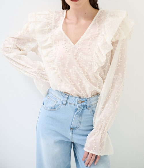 Cămașă damă cu broderie și decolteu în V